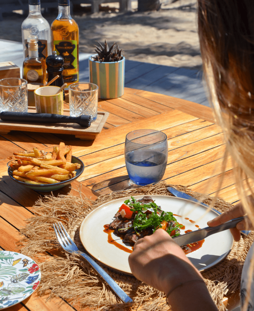 L'Hotel Manapany décline son offre restauration en deux expériences complémentaires : Le Rockies, une salle élégante, ouverte et ventilée par les alizés qui offre une vue panoramique sur la mer et Le Sandy Beach des tables installées au bord de l'eau, les pieds dans le sable.